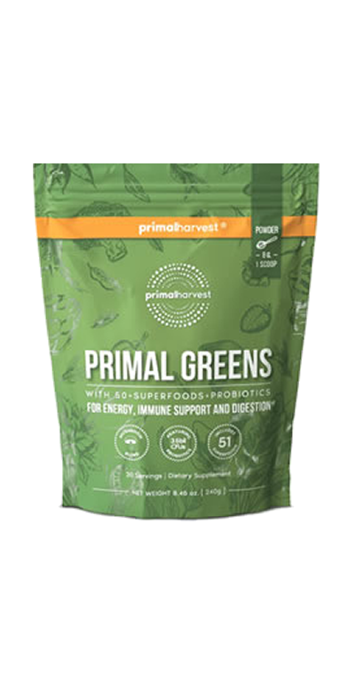 Diving into Primal Harvest Super Greens, it’s a powerhouse blend featuring over 50 superfoods, including organic fruits, Ayurvedic herbs, adaptogenic mushrooms, and more. This green powder emphasizes not just quantity but quality, with a focus on ingredients that support immune function, digestion, and mental clarity.